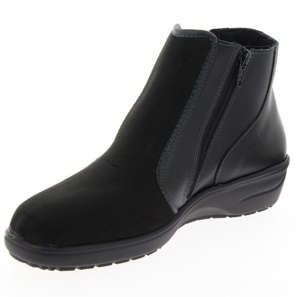 SYRIELLE est une bottine orthopédique femme spécialement conçue pour l’hiver et l’extérieur avec son avant pied en tissu extensible et déperlant, son assemblage soudé pour une meilleure étanchéité et la semelle WETGRIP® développée pour être légère, stable et agrippante sur un sol mouillé comme sec. Syrielle garantit un chaussage facile grâce à son élastique d’aisance, sa bride latérale ajustable et sa fermeture glissière.